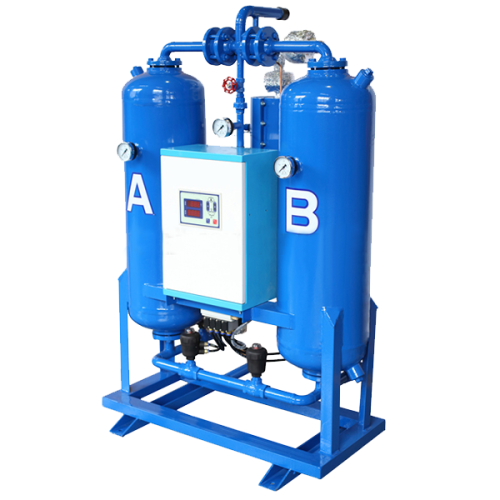 Адсорбционный осушитель оборудован двумя сосудами, заполненными адсорбентом, которые работают попеременно. Молекулы водяного пара в сжатом воздухе, проходящем через рабочий сосуд, захватываются и удерживаются адсорбентом. В этот момент во втором сосуде идет процесс регенерации (освобождения адсорбента от влаги путем сброса давления). Через определенное время контроллер переключает сосуды и цикл повторяется. В адсорбционных осушителях с холодной регенерацией расход регенерирующего воздуха составляет ориентировочно от 10 до 20%, в зависимости от требуемой температуры точки росы на выходе.