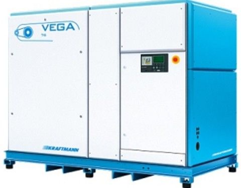 Kraftmann Vega 55-14 (Германия) – это промышленный винтовой масляный компрессор, который может быть использован для круглосуточного производства сжатого воздуха. Компрессор дает возможность получать до 9370 нормальных литров воздуха в минуту при максимальном давлении до 8 атмосфер. Регулировка давления возможна в интервале от 5 до 14 бар с точностью 0.1 атмосферы. Энергоэффективная винтовая пара с запатентованными профилями роторов дает возможность производить сжатый воздух, затрачивая меньше мощности. Электродвигатель компрессора Vega 55-14 имеет достаточный запас по мощности, который гарантирует стабильную и надежную работу винтового компрессора. Все основные узлы и компоненты компрессора Vega 55-14 расположены таким образом, чтобы потоки воздуха от вентилятора эффективно охлаждали нагревающиеся элементы компрессора, поддерживая тем самым оптимальный температурный режим всей компрессорной станции. Также грамотная компоновка компонентов обеспечивает легкий и быстрый доступ к узлам компрессора для диагностики или проведения технического обслуживания.