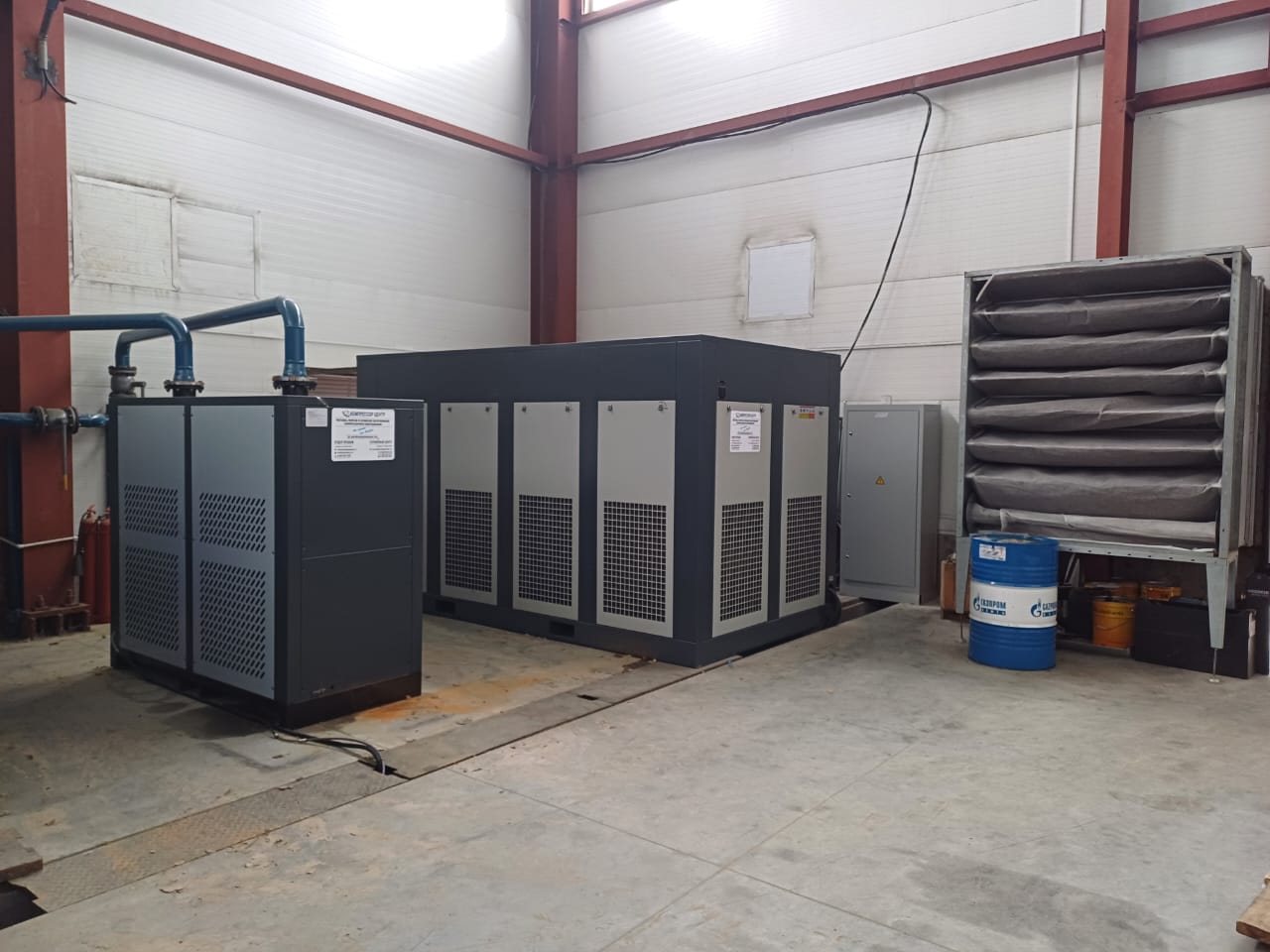 Воздуха нужно было много, закрыть потребность в сжатом воздухе всего предприятия сможет двухступенчатый винтовой компрессор "Enger" HBD-220DFE2. К нему в пневмолинию также был установлен рефрижераторный осушитель "Enger" RD-550A.